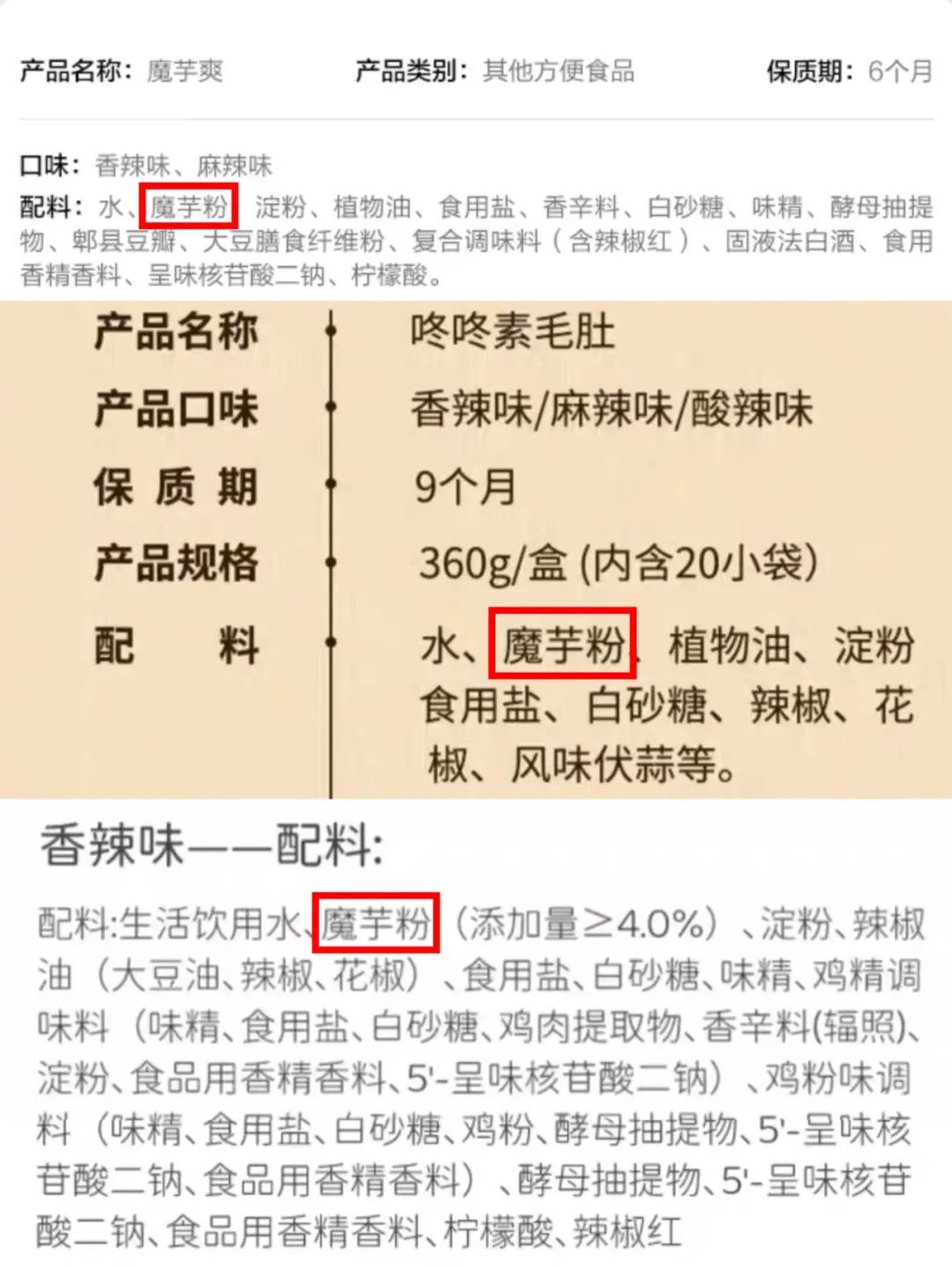 不止果冻,魔芋爽等零食中也有魔芋精粉。